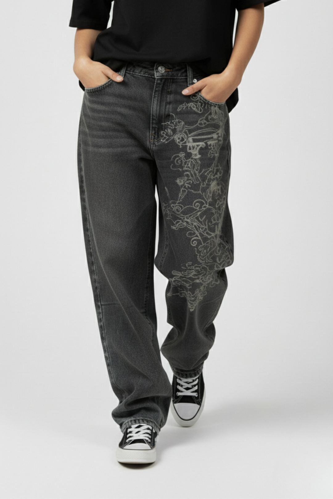 LifeOfStreetwear | Women’s Baggy Light-Wash Jeans with Cartoon Graphics
