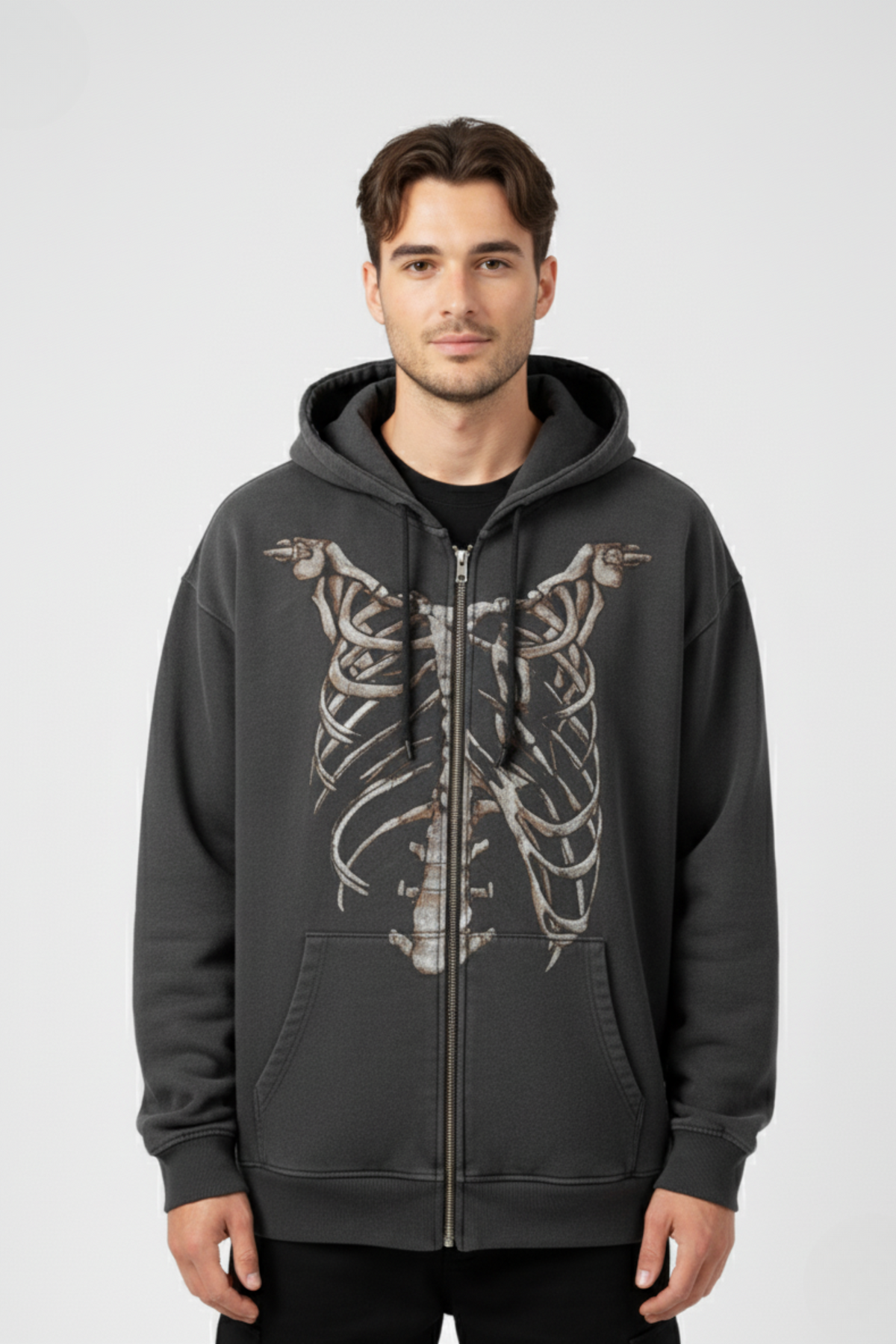 Crafted from a premium cotton-polyester blend, this hoodie offers a soft, breathable feel while staying durable enough for regular wear. The oversized fit with dropped shoulders provides relaxed comfort, while the skeleton graphic print makes it a statement piece for true street style.