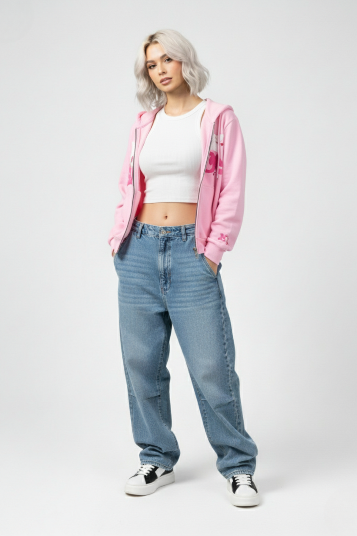 LifeOfStreetwear introduces a unisex oversized zip up hoodie that channels Y2K-inspired street style with a bold modern twist. This zip up hoodie features raised lettering and subtle graphic details, making it a standout piece for those who want to mix playful retro energy with everyday wear. Perfect for autumn layering, street style, or casual city looks, it’s designed for comfort and originality.