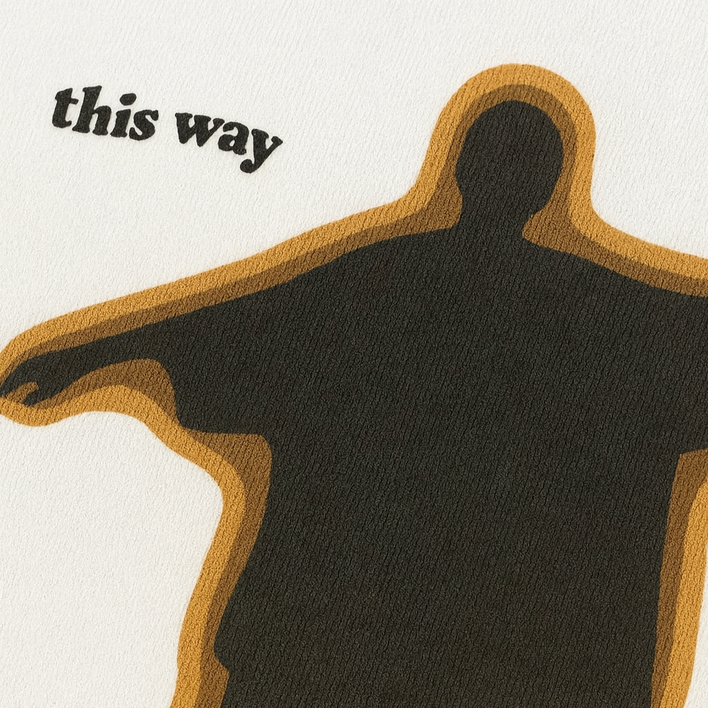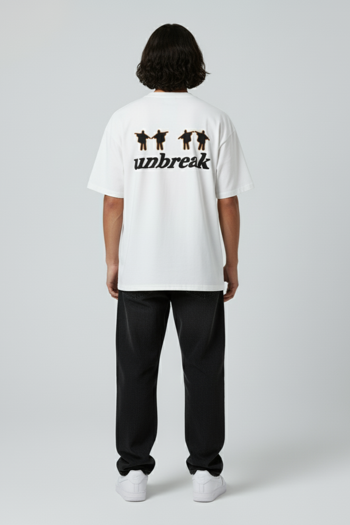 Men’s oversized white t-shirt with silhouette-inspired graphic design