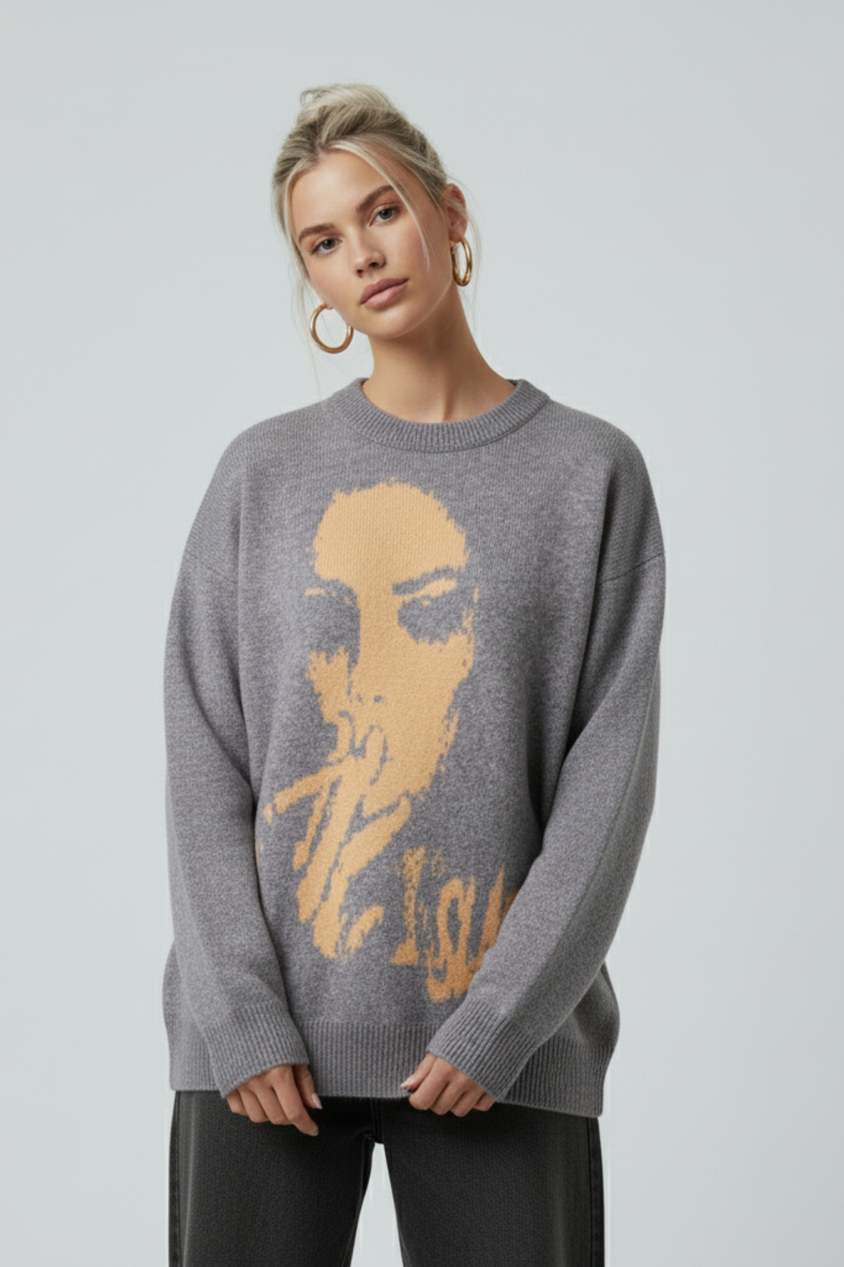 LifeOfStreetwear presents a unisex oversized sweater that blends vintage-inspired graphics with modern streetwear aesthetics. Featuring a playful jacquard character motif, this knit sweater brings retro charm into today’s fashion, making it the perfect statement piece for everyday street style. Designed for both men and women, it adds a bold yet versatile touch to any wardrobe.